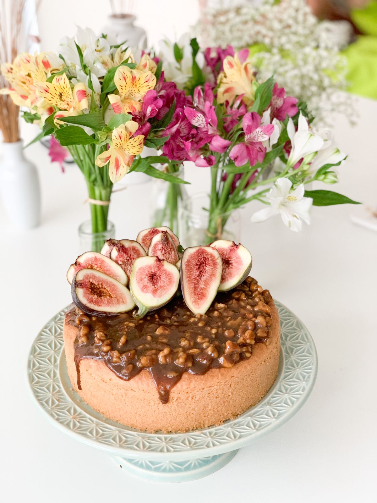 • Bolo de figo com caramelo de gengibre e nozes.